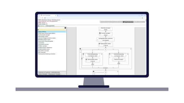 Der Designer mit grafischer Benutzeroberfläche ermöglicht die Erstellung von Formularen, Modellierung von Workflows, Automatisierung von Aufgaben und Dokumentengenerierung – so lassen sich Prozesse von der Antragstellung bis zur Bescheidung in der Sachbearbeitung vollständig digitalisieren. Im- und Export von Prozessen, eine Vielzahl an fertigen Bausteinen und Fehleranalysen ermöglichen eine effiziente Workflowgestaltung. Auswertungen und automatisierte Aufgaben sorgen für effiziente und transparente Abläufe und bessere Bereitstellung von Services für Bürgerinnen und Bürger.